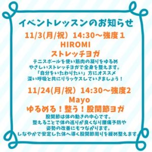 【11月イベントレッスン】のお知らせ(^^♪